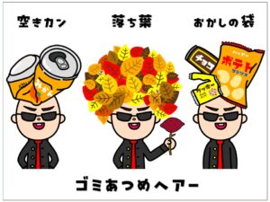 実際に子どもたちと一緒にゴミ拾いに行き、ゴミ集めヘアーを作りました🍂